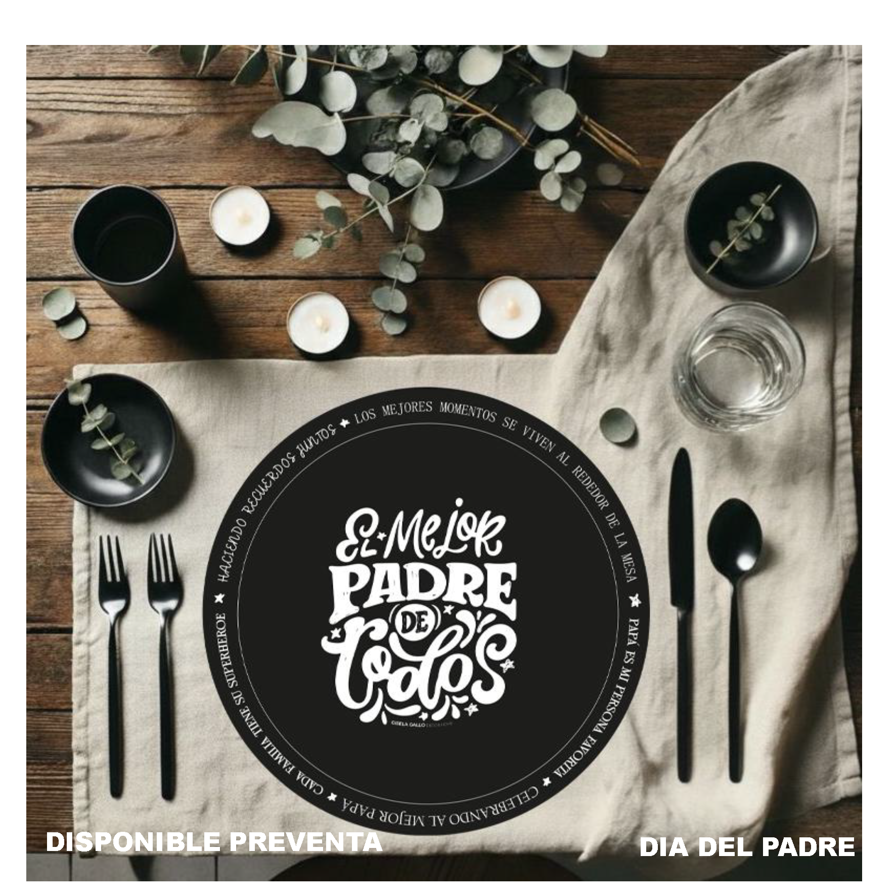 Platos de sitio redondos y cuadrados con diseños exclusivos.